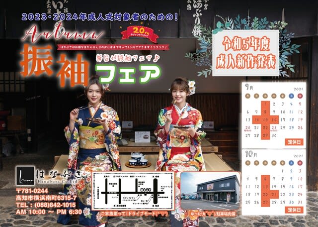 こんにちは☺ 8月もあっという間に過ぎ去ってしました(/ω\) おかげさまで忙しくさせていただいております。 再来年成人式を迎えられる方に、はなぶさからA4ハガキを送らせていただきました。 カレンダーと裏面には最新振袖を記載しておりますのでご確認下さいませ☺ 個性派からかわいい振袖まで多数ご準備しております。 どうぞご来店お待ちしております(*ノωノ)