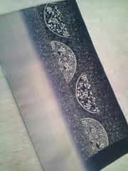 こんにちは 本日お店周辺はどんより曇り 降りそうで降らないビミョーなお天気です さて、本日は前回に引き続き、 大決算市のお値打ち品のご紹介です ↑本場縞大島の袋帯 落ち着いた色合いが素敵な袋帯 半月柄のデザインが