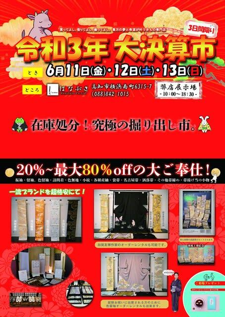 こんにちは(^^)/ 梅雨の季節できれいなアジサイが咲き誇っている時期☆彡 来月は「決算市」を行います。 6月11日・12日・13日の三日間!! 単衣の季節。オシャレな小物も充実しております! ご来場プレゼントもご用意い