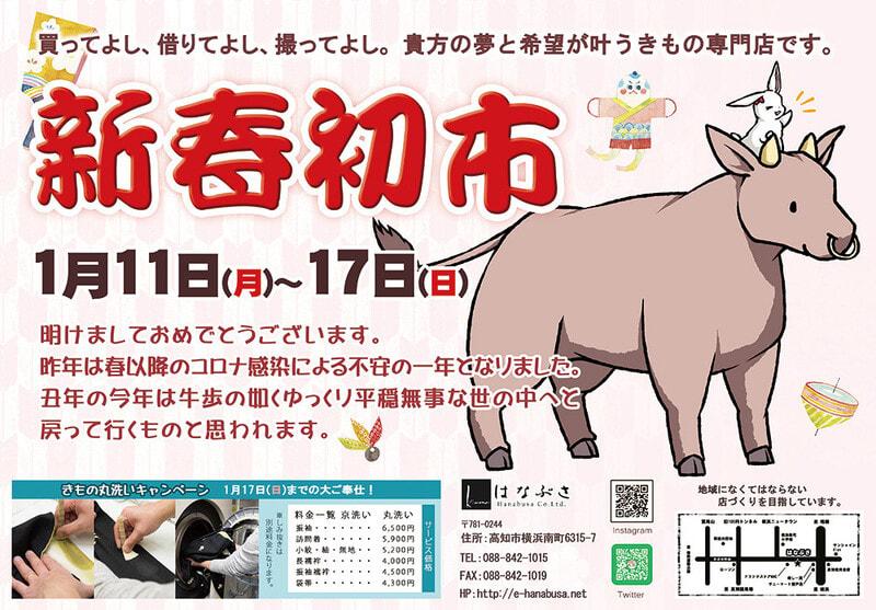 こんばんは 雪の舞う風景を久しぶりに見た今日この頃です⛄ 皆様いかがお過ごしでしょうか はなぶさではコロナ終息を願いまして、 新春初市を行う運びとなりました 11日からの開催です どうぞお気軽にご来店くださ