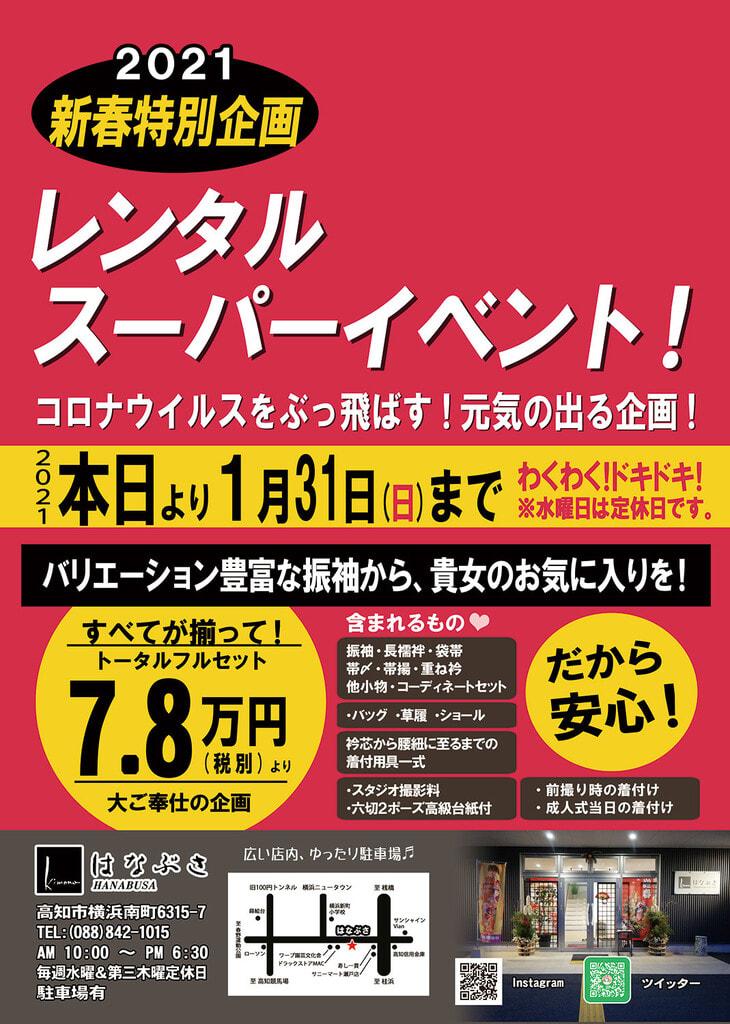 こんばんは🌃 気が付けばもう2月になろうとしておりました🐰 皆様いかがお過ごしでしょうか✨ 高知市成人式も無事終わり、後片付けも一段落 明日からは振袖フェアが始まります お店の設営も振袖モード
