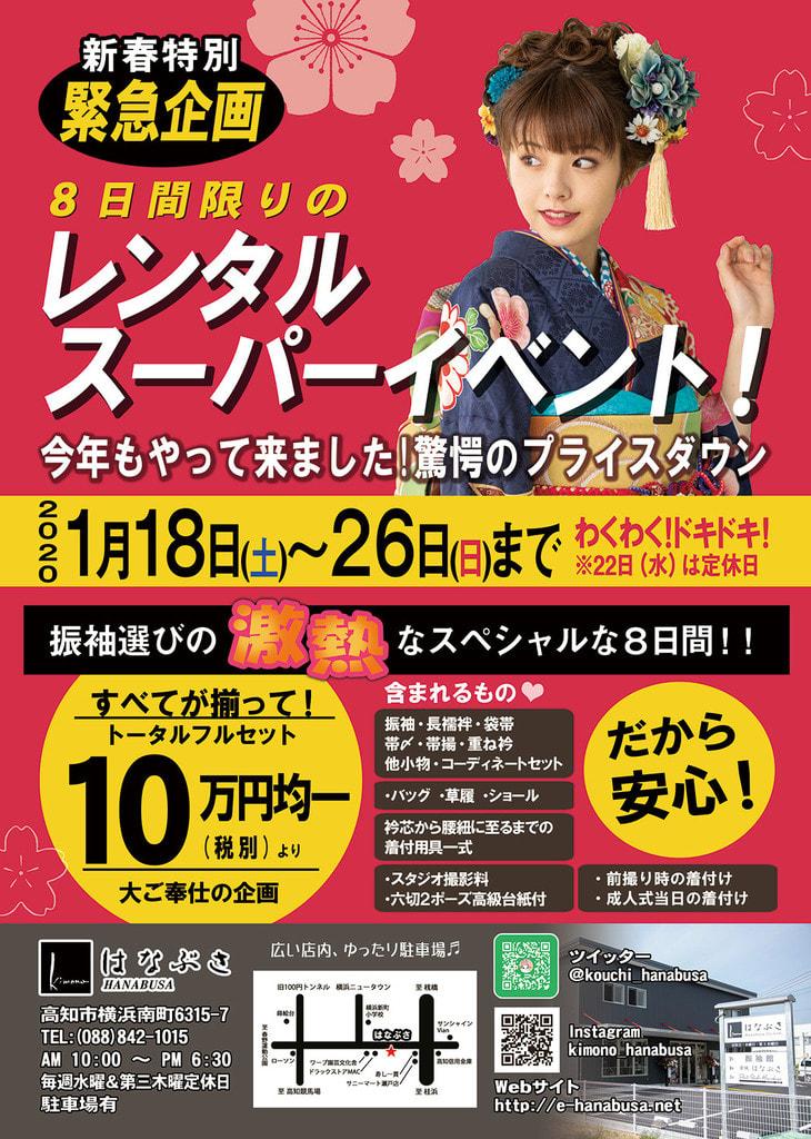 おはようございます☀ お店は定休日の本日、店舗周辺は良いお天気に恵まれております🐇 皆様いかがお過ごしでしょうか✨ 新春恒例となりました『振袖レンタルスーパーイベント』が 1月18日(土)より