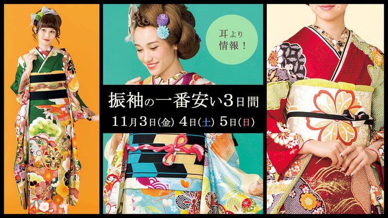 こんにちは 日中も少し肌寒くなってきました今日この頃 皆様いかがお過ごしでしょうか インターネットで振袖情報をご覧の皆様に耳より情報 「振袖の一番安い3日間」 11月3日(金)4日(土)5日(日)に開催致します お誂えレ