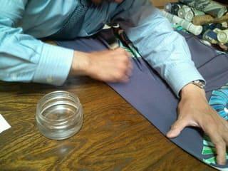 こんにちは 今日はすごい雨模様ですが 催しもののお客様がいらっしゃっています 現在お預かりしたお着物の悉皆を、 職人さんにしていただいています 専用の道具と液体を使って、 すばやい手付きでクリーニング 油の汚れがきれいに