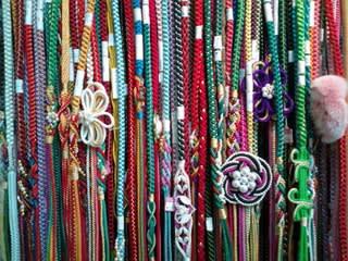 こんにちは 今日は朝からお着付けと お写真のお客様がご来店されていました お天気でよかったです 昨日載せた帯締めですが ほかにも色んな帯締めがあります スタンダードなものから 更に大きなアクセントがついたものまで 眺めて